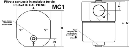 | Tipo | Cartuccia | A | B | C | D | E | F | G | H | Peso kg |